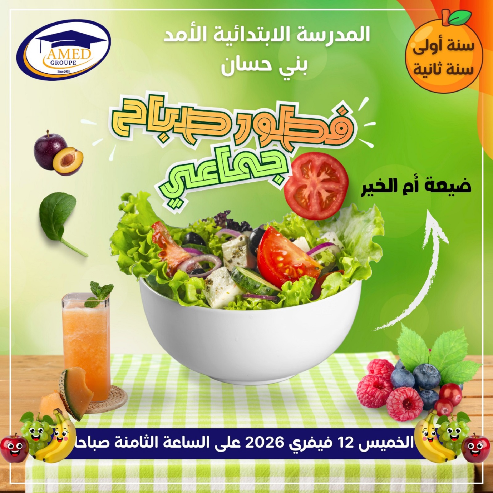 عندما يحيي الفن المدرسة! تنظم المدرسة الابتدائية الأمد بني حسان ورشة فنية في الخزف مخصصة لأطفال قسم التحضيري وأوليائهم وذلك تحت إشراف الفنانة آية الجغامة، في أجواء إبداعية مليئة بالمشاركة والمتعة. السبت 31 جانفي 2026 الساعة 09 صباحا ندعو جميع أولياء أطفال التحضيري للمشاركة في هذه التجربة الفنية المميزة مع أبنائهم، لأن الإبداع المشترك هو أجمل...Read More